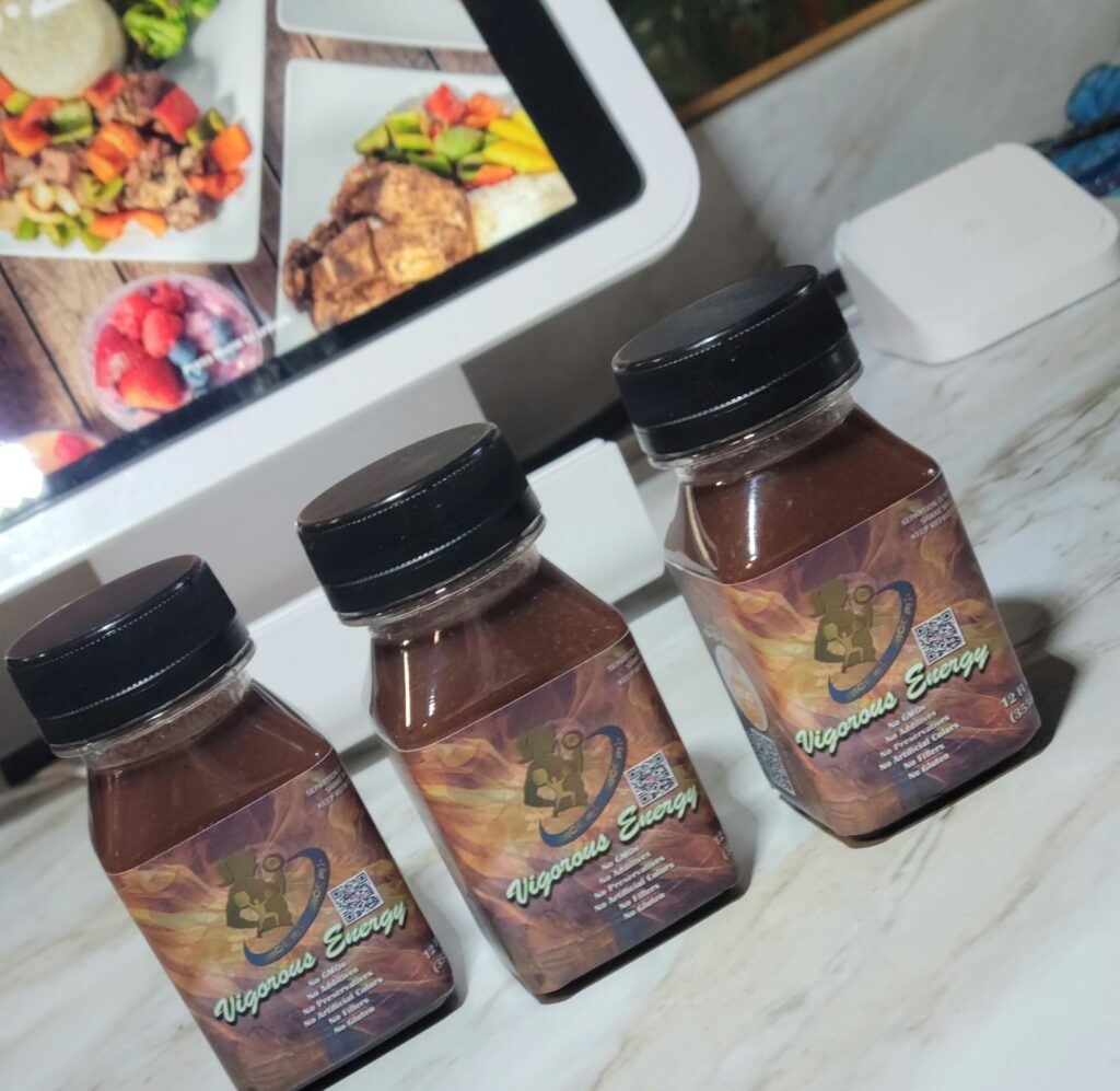 This delicious, all-natural beverage is crafted with a unique blend of herbs, fruits, and botanicals that have been traditionally used to support vitality and well-being. Made with Elderberry, Dragon Fruit, Passion Fruit, Mango, Acai, Ashwagandha, Black Ginger, Panax Ginseng, Lion’s Mane, Taurine, Horny Goat Weed, Arabian Dates Paste, Black Seed Extract, SEAMOSS, Lemon & Wildflower Honey. Packaged in (12oz Bottles)